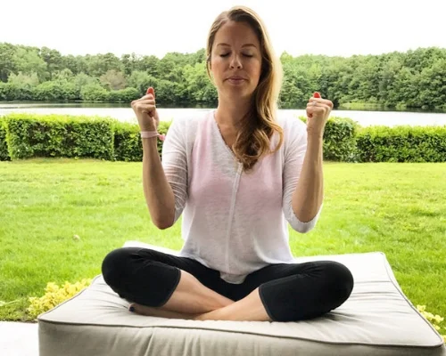 Step 1. Close your eyes. Pace your breathing by placing your right thumb softly on the outside of your right nostril. Take a deep, even breath in through your left nostril and out through your left nostril. Alter your fingers so the right pointer finger is plugging the left nostril and you’re slowly taking a deep inhale and exhale from your right nostril. Continue this back-and-forth breathing sequence for 1-2 minutes.